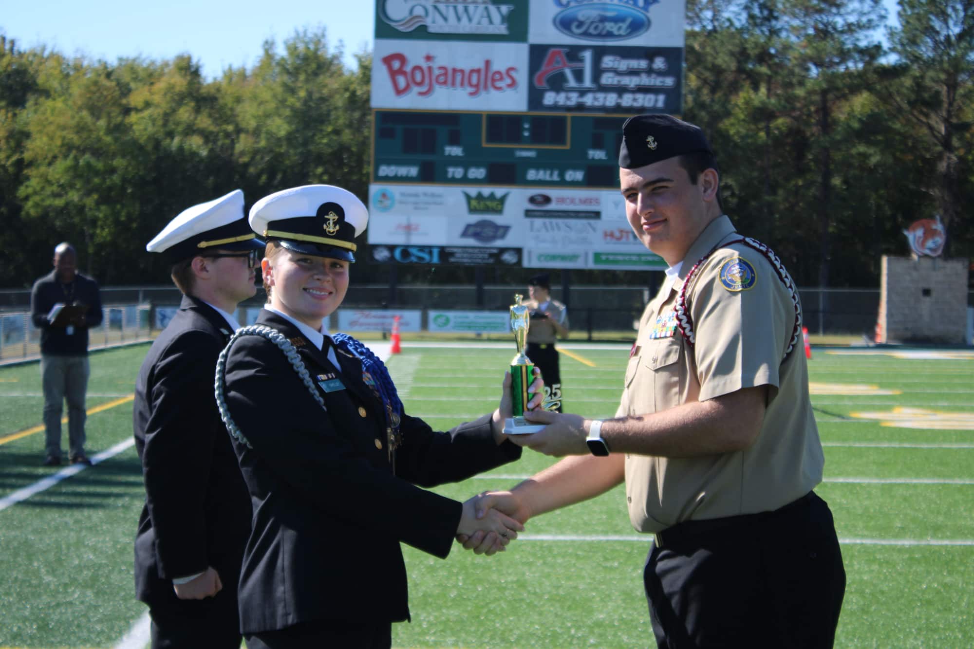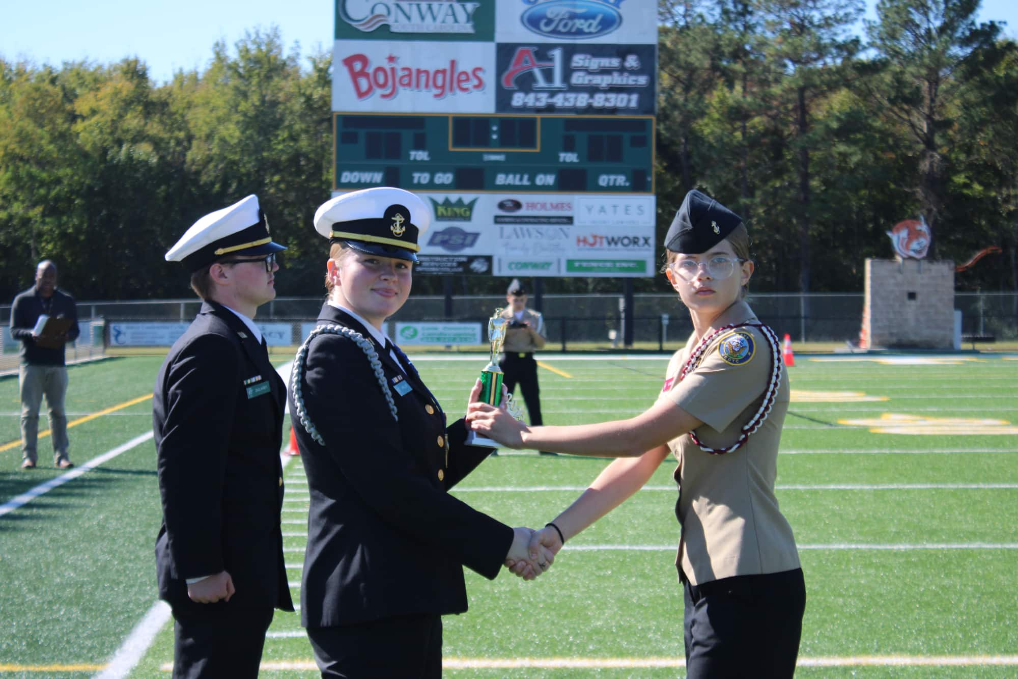 On Saturday, November 1st, The CFHS-NJROTC participated in the Conway Drill meet. These cadets have worked hard and showed their talents at this drill meet. The unit placed 1st overall, 1st Armed Squad, 1st Armed Platoon, 2nd Freshman Squad, 3rd Unarmed Platoon, 2nd Color Guard, 1st Freshman Color Guard. Job well done to these Cadets.