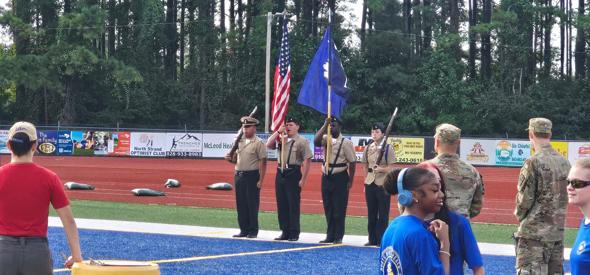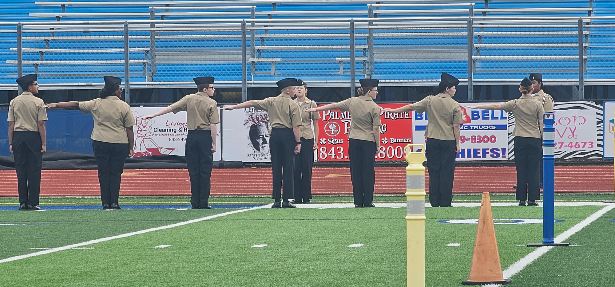 All JROTC programs focus on improving cadets’ ability to work together in a team environment, including marching in squads and platoons. Although marching techniques are taught during class, the drill team provides additional feedback and guidance for students. During practice, cadets are grouped together based on their grade level and drill capabilities. Students learn how to properly perform columns, flanks, halts, and facing movements. While this team challenges cadets to maintain a straight face, critique small mistakes and receive constructive criticism, students also build courage, step outside of their comfort zone, and understand the importance of teamwork.
