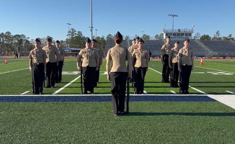 On January 20th Carolina Forest High School NJROTC participated in the Georgetown Drill Meet. This specific drill meet was a “sanction” drill meet, which means cadets get inspected, perform drill routines, and compete in a physical training portion. The physical training consisted of a sit-up, push-up, and baton run. The drill routines consisted of Varsity Colorguard, Unarmed platoon, Armed platoon, Unarmed exhibition, and Armed exhibition. This was a big accomplishment for our cadets since this has been our first sanction drill meet in 2 years. A big thanks and congratulations to all of the cadets who put in the hard work and dedication to make this drill meet possible.