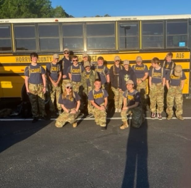 On April 13th, our Orienteering Team cadets traveled to Green Sea Floyd High School to participate in their Raider competition. Cadets participated in many challenges, including a quarter-mile relay race, a truck pull, a knot-tying, a boat-carrying relay, a rope traverse, and a challenge course where cadets completed an obstacle course while carrying a 90-pound litter. The obstacle course included tire flipping, high and low crawls, crossing a balance beam, traversing a six-foot wall, carrying rucksacks, and carrying ammo cans from one point to another. Overall, our cadets placed second in the traditional division and third in the co-ed division. Our cadets were also complimented on their high morale and aptitude.