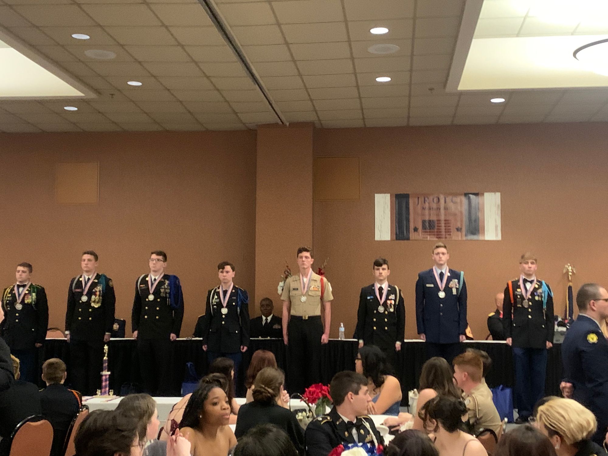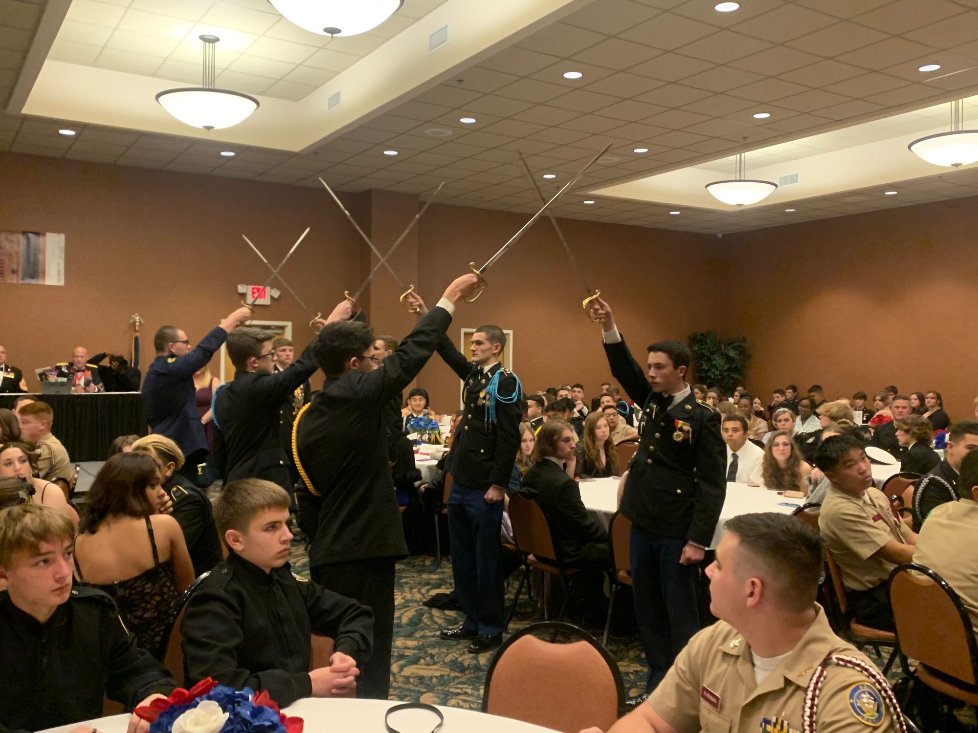 After the formal portion of the ball concluded cadets were released from their tables to get food and talk with other cadets or instructors. Later in the night, the cadets were released downstairs to dance, chat with friends and new people, and more. The military ball was a great event that many cadets enjoyed. We cannot wait until next year's annual military ball!