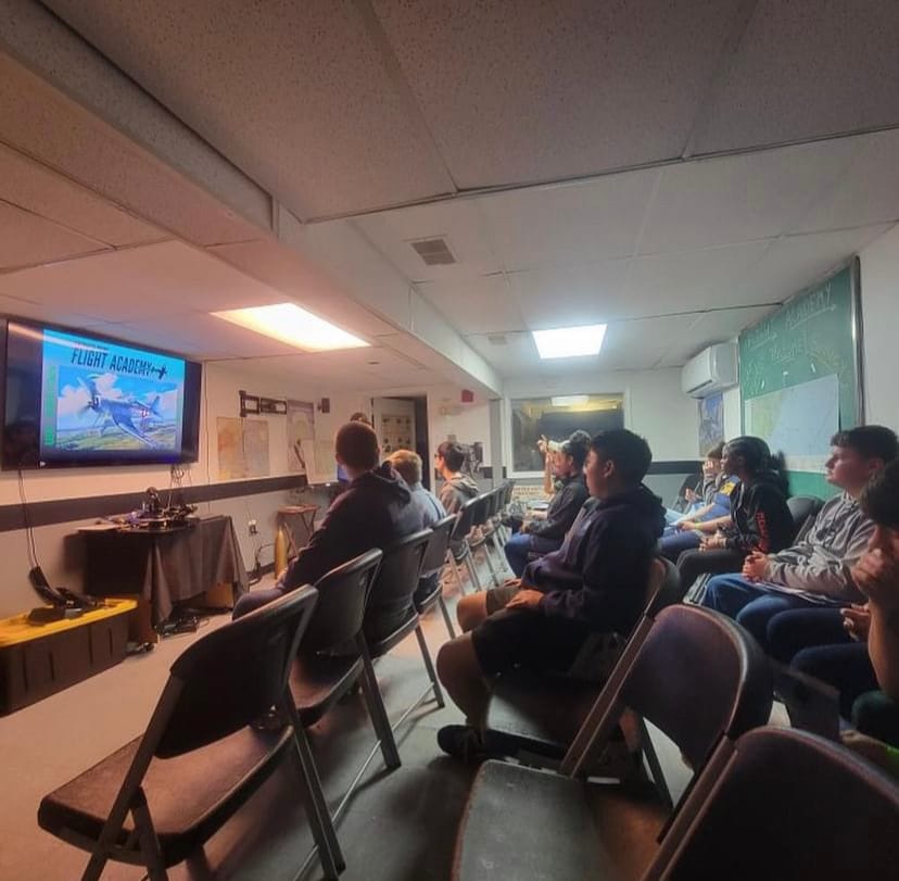 After cadet’s were done exploring they were seperated in three groups and then were put in pairs of two. Before flight academy started cadet’s were brought into a classroom to learn about the background of USS Yorktown and the background of different wars that the USS Yorktown was involved in. Once the brief was over cadets were brought to multiple monitors where they would use a computer simulation and learn how to navigate a plane. Cadet’s were required to fly through obstacles and then land their plane safely on the ground.