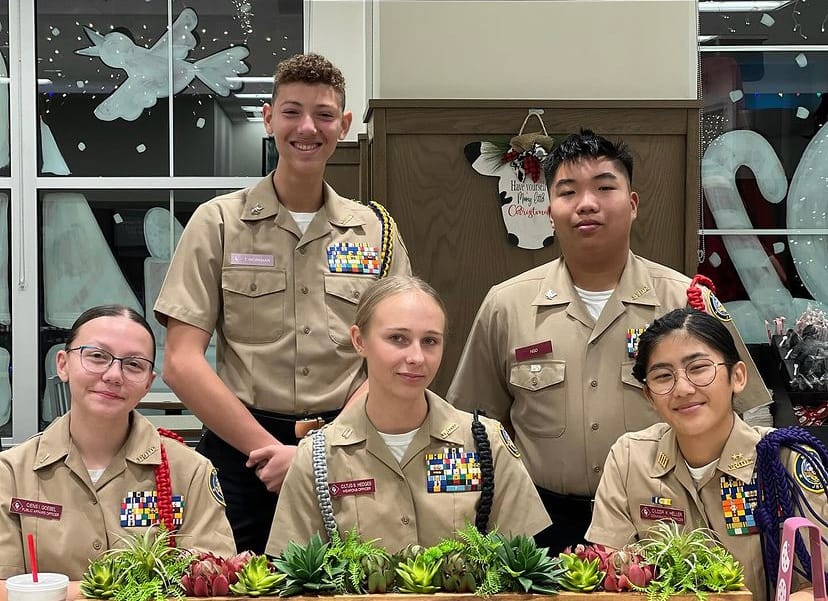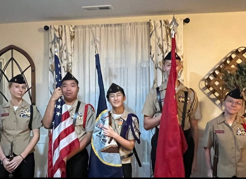 On December 2nd, 2023 5 of our cadets participated in a color guard located in Pawleys island. Our cadets presented the State flag, American flag, Marine Corps flag, and two color guard rifles. The cadets presented the color guard to retired Veterans from all Military branches. When the color guard was over, the cadets put up all of their gear and made their way back to school.