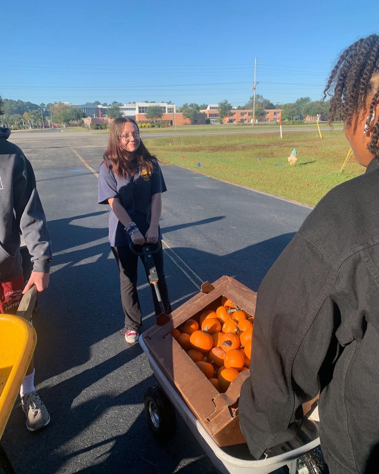 More and more people are joining in on the autumn season as Halloween approaches! Whether or not you celebrate the holiday, decorating with pumpkins, lights, and wreaths is a fun tradition everyone can enjoy. This weekend, the NJROTC unit helped unload pumpkins from Christ the Servant Lutheran Church and hand them out to local residents. We hope that everyone finds warmth and comfort in the changing season!